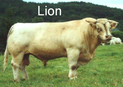 Lion, 1A-Preisträger 1999 in Krefeld, Sohn von KB – Bullen Luzifer, Mutter war eine Friand- Tochter. Hervorragende Töchterleistung in Reproduktion und Milchanlage. Sehr gute Zitzen und Euterform. Ein sehr ausgeglichener Bulle im mitleren Rahmen, mit feinerem Knochenbau und sehr gutem Fundament.