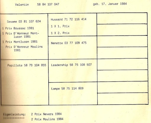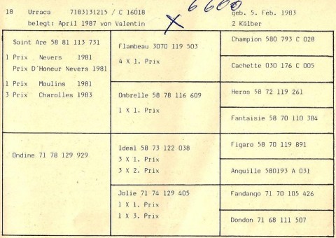des Herrn Paul Pacaud wurde die Kuh Urraca mit Vaduk trächtig erworden. Sein Vater war Valentin, ein Sesame - Sohn.